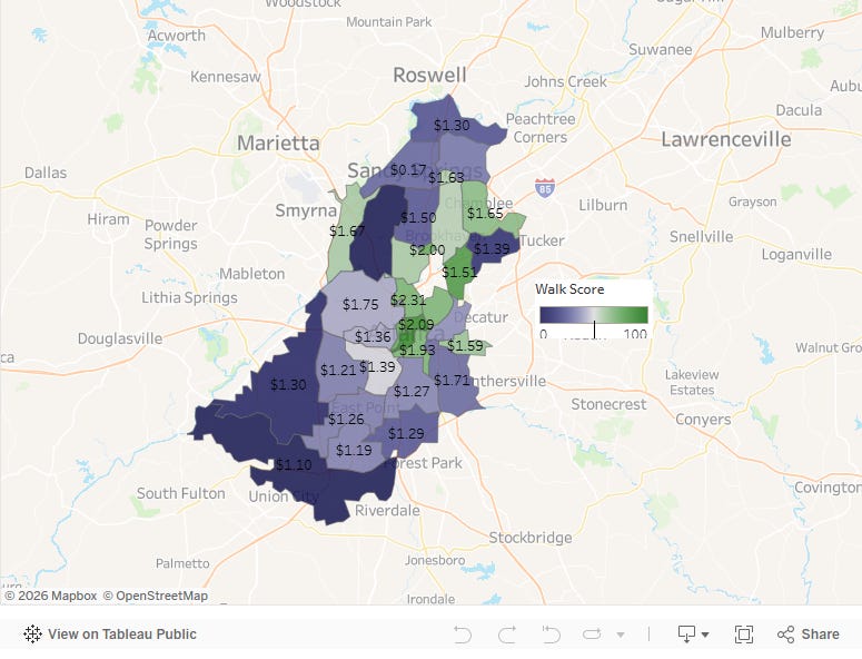 Atlanta Rental Market: Walk Score Premium Analysis