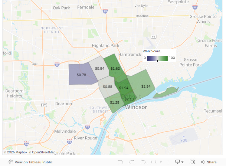 Detroit's Walkable Neighborhoods & Rent Premiums