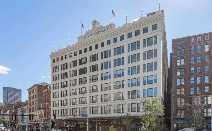 May Building — 200 Euclid Avenue The largest adaptive reuse project in the downtown pipeline by unit count, delivering three hundred seven apartments at a development cost of one hundred sixty-five million dollars. The May Building anchors the Euclid Corridor — the spine of downtown Cleveland’s residential transformation — and its scale positioned it as the proof-of-concept for institutional-quality product drawn from historic office inventory. Its absorption through the lease-up period established market-level benchmarks for the entire corridor.